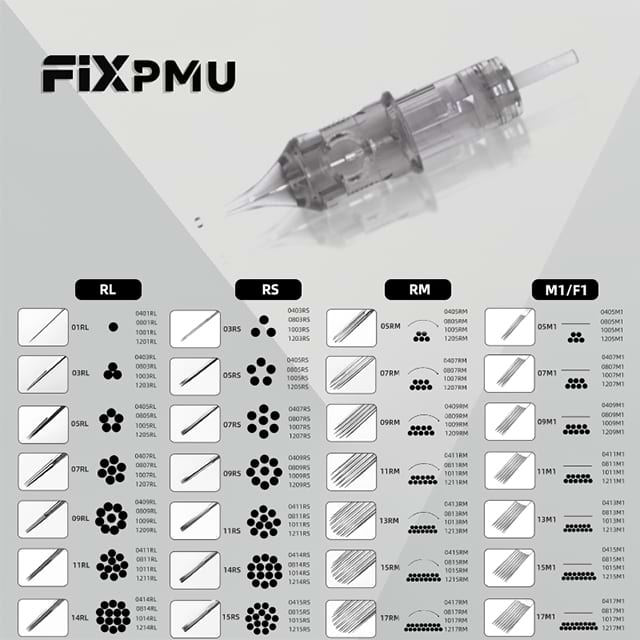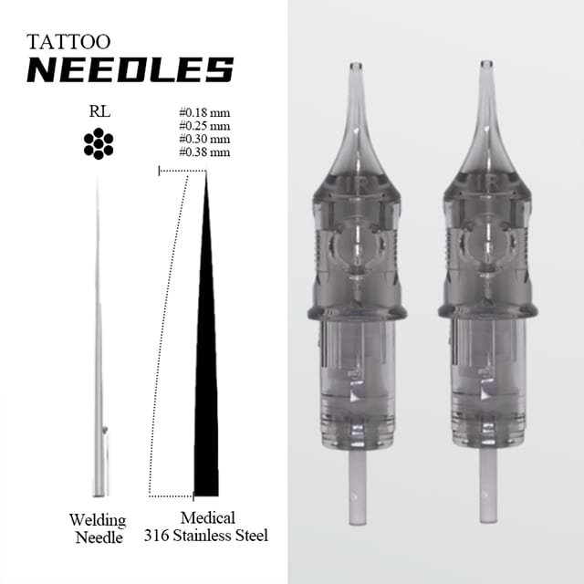 Multi-Technique Compatibility: RL5 (0.30mm) for medium lines in script tattoos, RL7 (0.35mm) for bold outlines in traditional flash, M1 for soft shading, and M3 for dense color packing in Japanese irezumi.